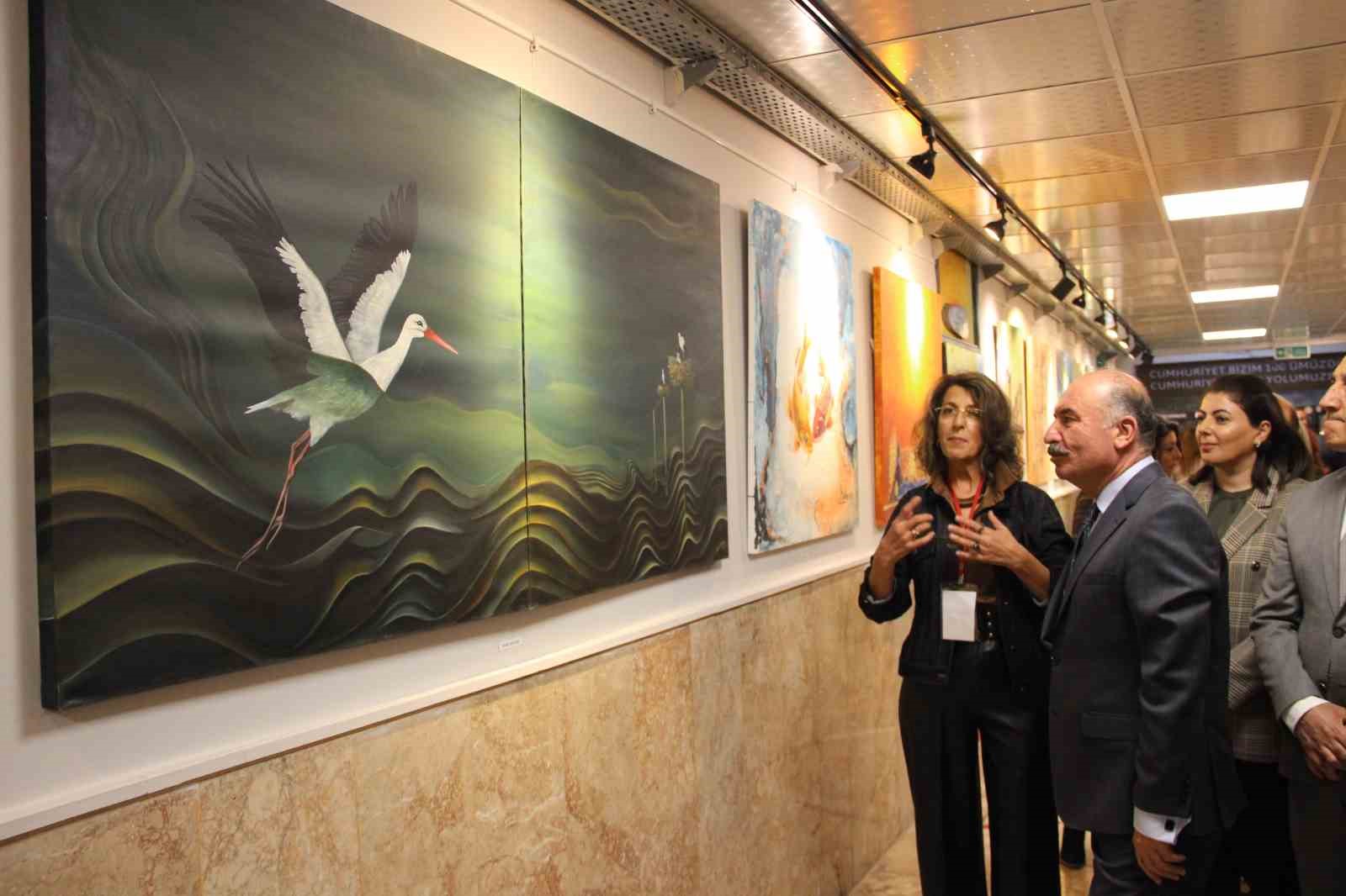 Çorum’da düzenlenen 7. Geleneksel Karma Resim Sergisi’nde 47 sanatçı tarafından yapılan 61 eser, şehit öğretmenler anısına sergilendi.
