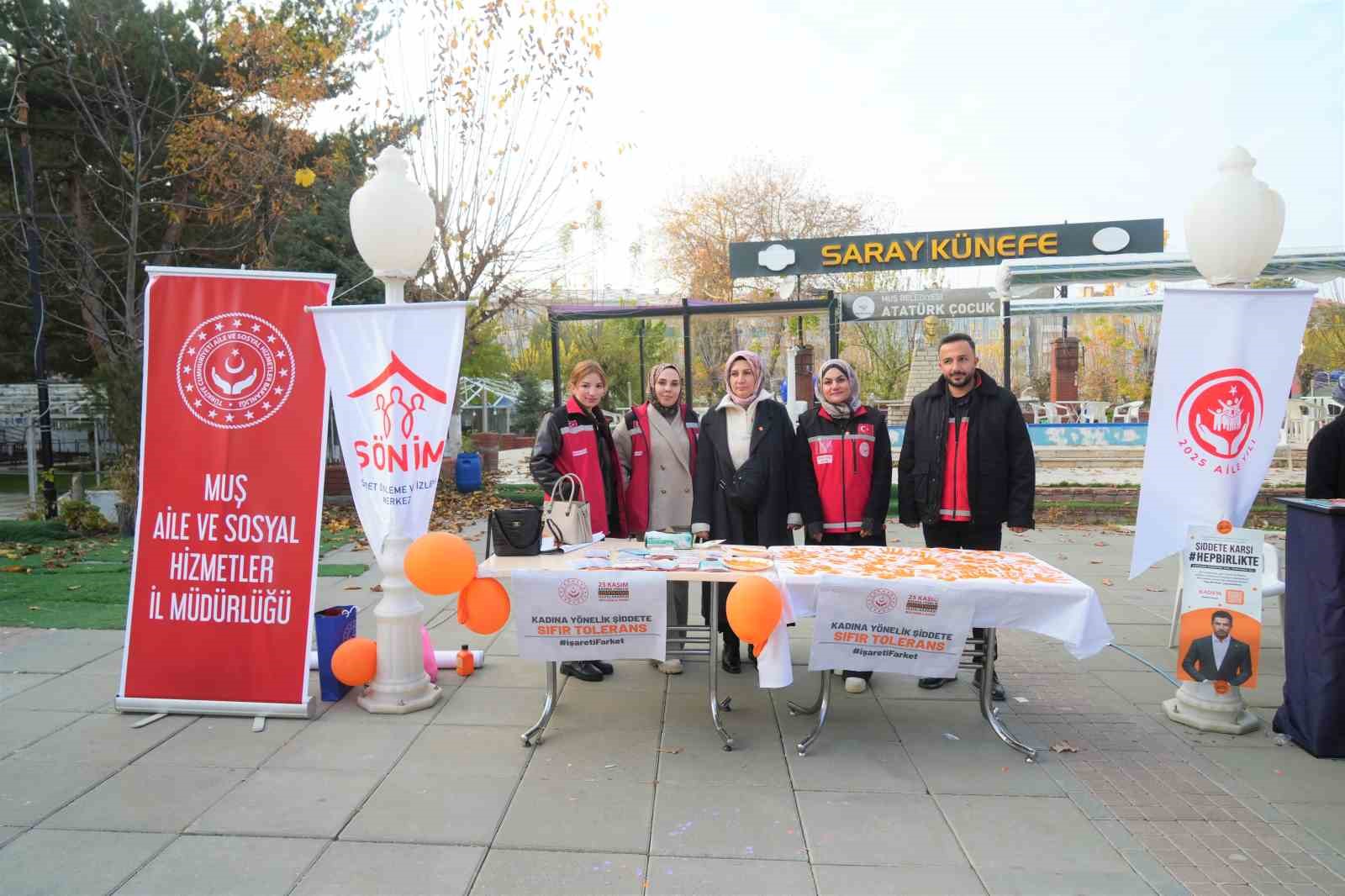 Kadına Yönelik Şiddete Karşı Uluslararası Mücadele Günü kapsamında Muş Aile ve Sosyal Hizmetler İl Müdürlüğü ile Kadın ve Demokrasi Vakfı (KADEM) iş birliğinde kentin en işlek noktalarından İstasyon Caddesi üzerinde tanıtım standı kuruldu.