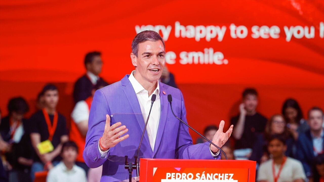El presidente del Gobierno, Pedro Sánchez, ha acompañado a María Jesús Montero, candidata del...
