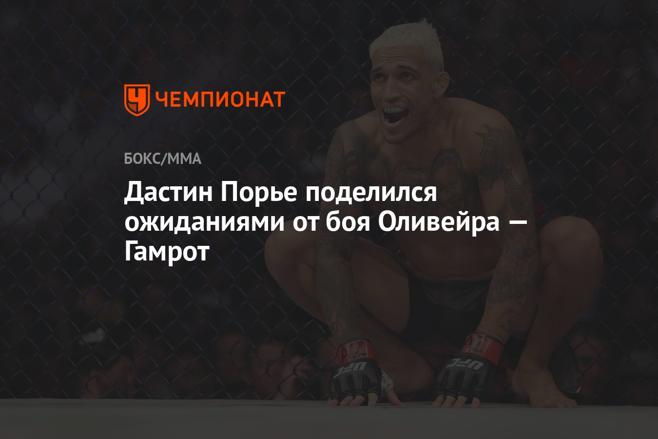 Трёхкратный претендент на титул UFC в лёгком весе (до 70 кг) Дастин Порье высказался о предстоящем поединке между бразильцем Чарльзом Оливейрой и поляком Матеушем Гамротом.