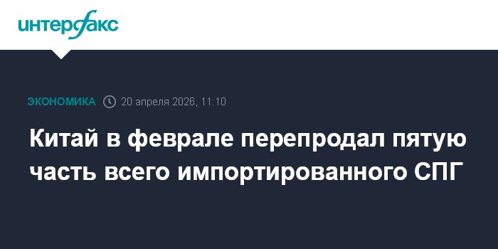 Москва. 20 апреля. INTERFAX.RU - Китай в феврале 2026 года реэкспортировал рекордные 749 тысяч тонн сжиженного природного газа (это почти миллиард кубометров газа в состоянии после регазификации и около дюжины крупнотоннажных газовозов), что является...