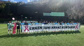 Kozlu Şehir Stadı'nda oynanan Süper Amatör Lig müsabakası öncesinde, iki takımın futbolcuları sahaya "Erken tanı hayat...