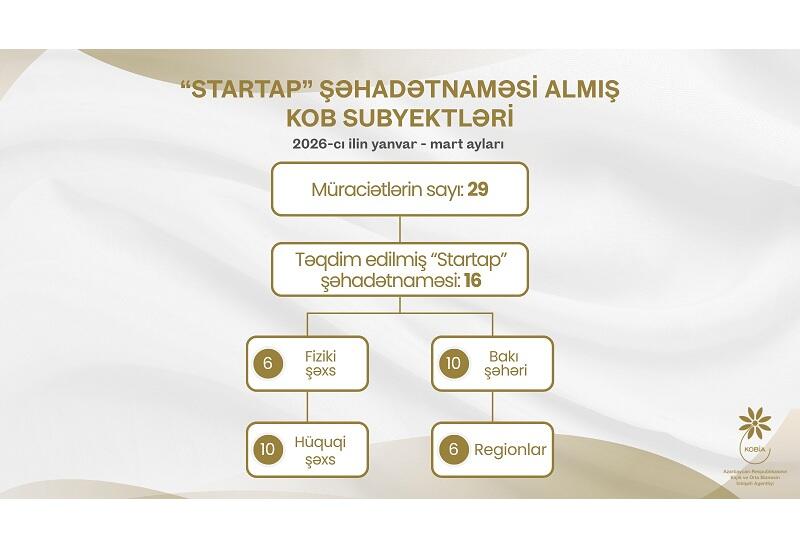 2026-cı ilin yanvar-mart aylarında 29 mikro və kiçik sahibkar "Startap" şəhadətnaməsi almaq üçün Kiçik və...