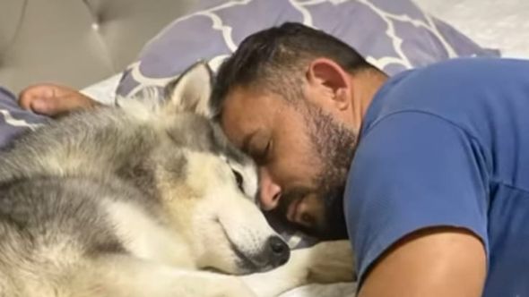 Un cane Alano enorme, un letto troppo piccolo e un Corgi...
