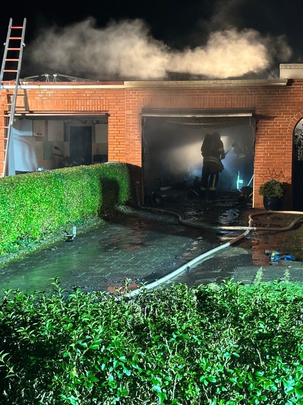 FW-ROW: Garage brennt in voller Ausdehnung - Feuerwehr verhindert Übergreifen auf Wohnhaus