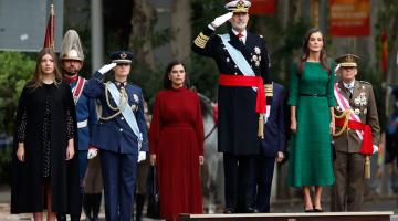 Fiesta Nacional Los Reyes presiden junto a la princesa Leonor el desfile militar, con pitos a la llegada de Sánchez y plante de Abascal No han asistido a la tribuna de autoridades cuatro ministros y seis presidentes autonómicos Ampliar Los reyes Felipe y...
