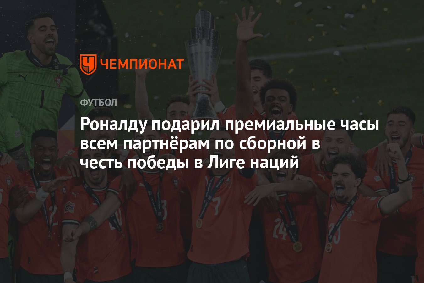 Нападающий сборной Португалии и «Аль-Насра» Криштиану Роналду подарил часы партнёрам по национальной команде в честь победы в Лиге наций. Об этом сообщает SIC Noticias.
