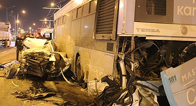 MALATYA'da otomobil, TIR ve otobüsün karıştığı zincirleme kazada otomobilde bulunan 2 kişi...