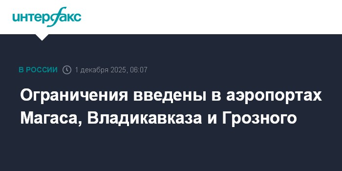 "Аэропорт Владикавказ (Беслан), Грозный (Северный), Магас. Введены временные ограничения на прием...