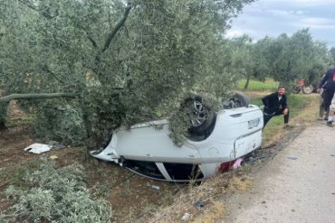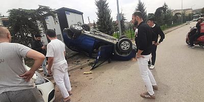 Bursa'da, Orhangazi - İznik yolunda meydana gelen trafik kazasında sürücünün kontrolünden çıkan otomobil, takla atarak zeytin tarlasına uçtu. Kazada, otomobilde bulunan ili kişi ölümden döndü.