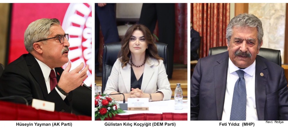 AK Parti Genel Başkan Yardımcısı ve Hatay Milletvekili Hüseyin Yayman, MHP Genel Başkan Yardımcısı ve İstanbul Milletvekili Feti Yıldız ve DEM Parti Grup Başkan Vekili ve Kars Milletvekili Gülistan Kılıç Koçyiğit'ten oluşan komisyon üyelerinin MİT...