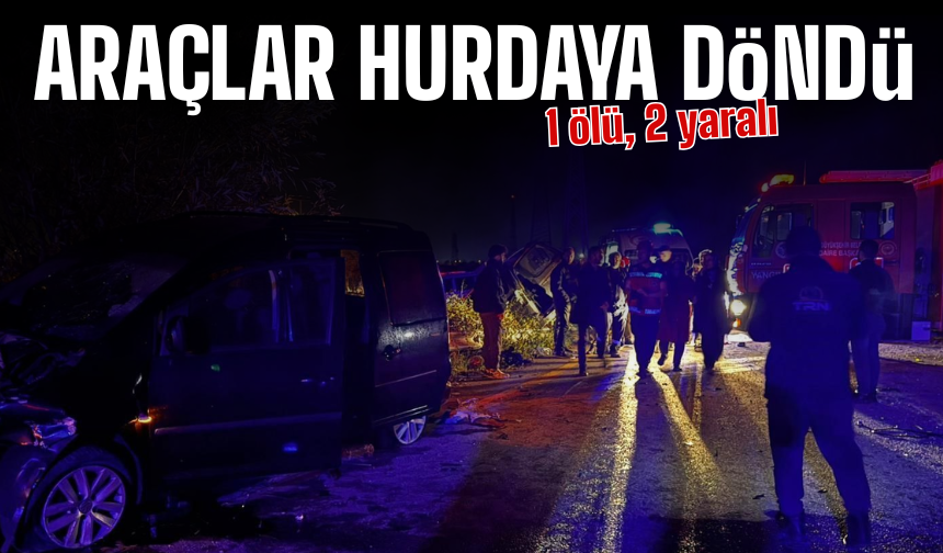 İki hafif ticari aracın çarpışması neticesinde meydana gelen trafik kazasında 1 kişi hayatını kaybetti, 2 kişi yaralandı.
