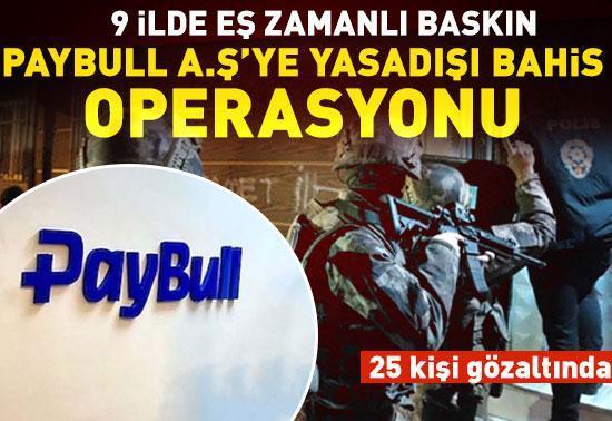 Paybull Elektronik Para ve Ödeme Hizmetleri A.Ş. ile şirket yetkilileri hakkında başlatılan yasa dışı bahis gelirlerini aklama soruşturmasında 25 kişi gözaltına alındı.