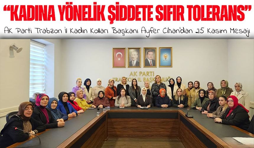 AK Parti Trabzon İl Kadın Kolları Başkanı Ayfer Cihan, 25 Kasım mesajında kadına yönelik şiddetle mücadelede sıfır tolerans vurgusu yaptı.