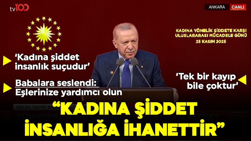 Cumhurbaşkanı Erdoğan, kadına yönelik şiddetin sadece bireysel bir sorun değil, tüm toplumu ilgilendiren bir insanlık suçu olduğunu vurgulayarak kararlı mücadele mesajı verdi.