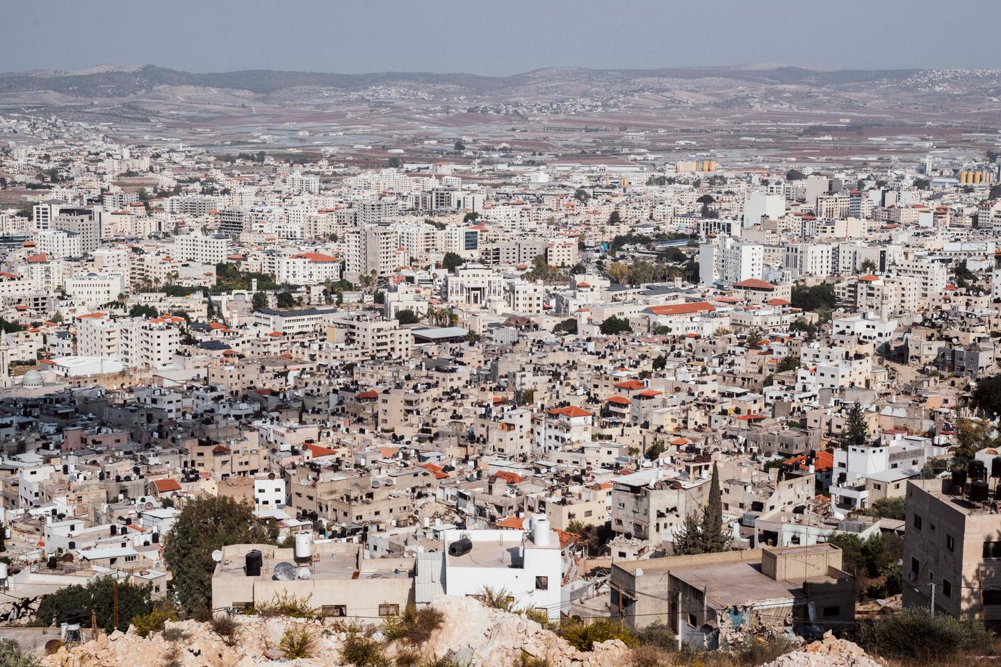 Vue sur le camp de réfugiés de Jénine (Cisjordanie), que l’on peut identifier par la taille des immeubles, des hauteurs de la ville, le 28 octobre 2025. LUCIEN LUNG/RIVA PRESS POUR « LE MONDE »