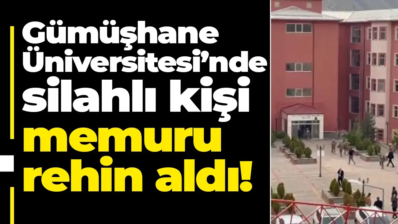 Gümüşhane Üniversitesi'nde çalışan bir kişi, başka bir üniversite çalışanını silahla rehin aldı. Polis silahlı adamı ikna etmeye çalışıyor.
