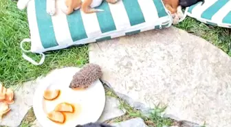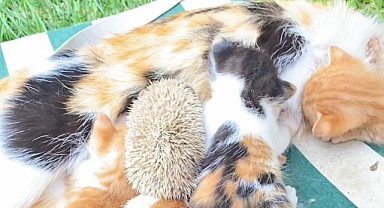 Karınlarını doyuran yavru kedilerin, süt kardeşi oldukları kirpilerle koyun koyuna uyuduğu...