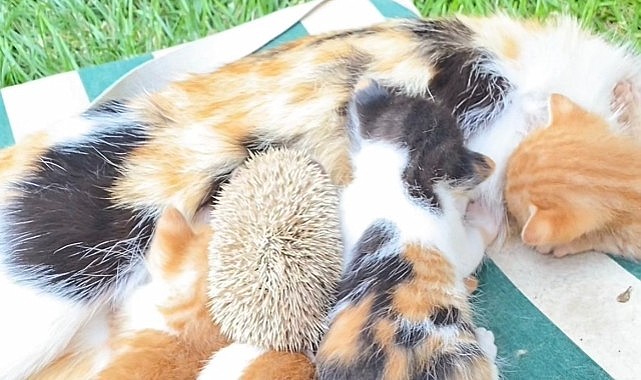 Kocaeli'de anne kedinin, kendi yavrularıyla birlikte kirpi yavrularını da emzirmesi yüzlerde tebessüm oluşturdu.