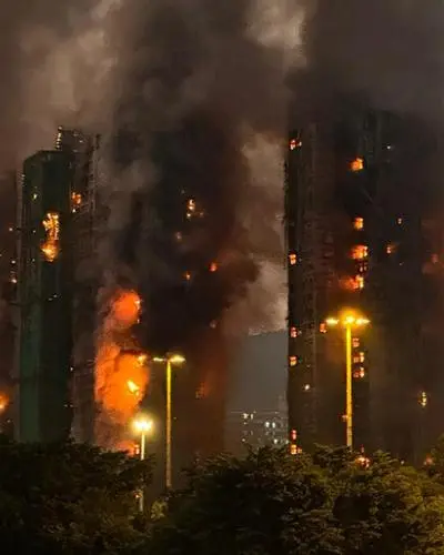 1 In einer Wohnanlage in Hongkong brach das Feuer aus. Foto: Chan Long Hei/AP/dpa/Chan Long Hei