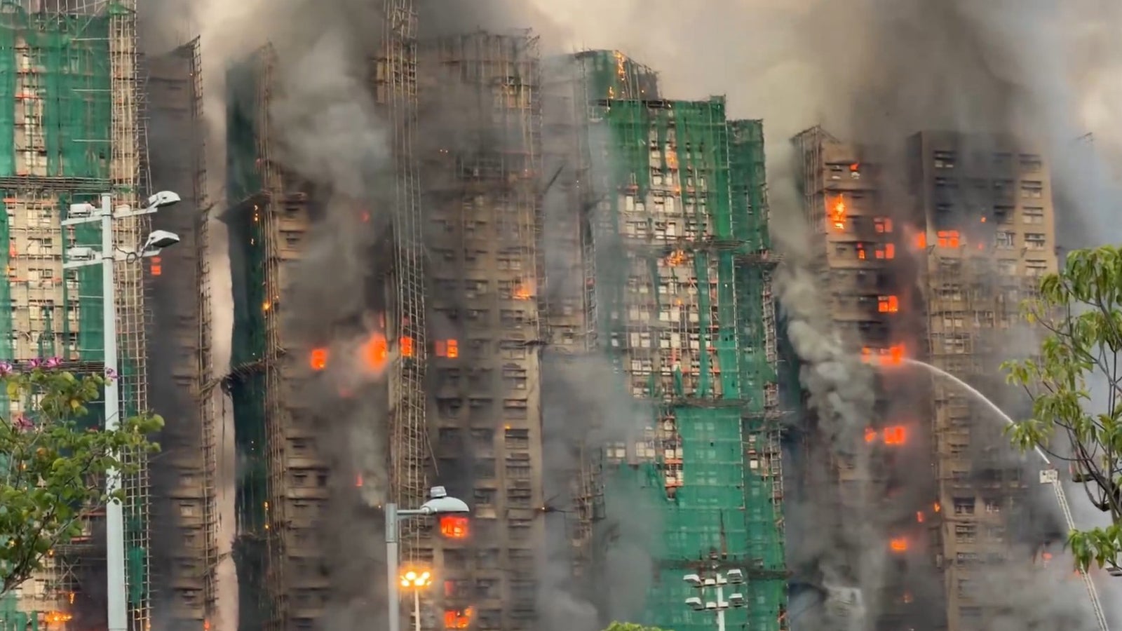 Dichte Rauchschwaden, brennende Gerüste: In einer Hochhaus-Wohnanlage in Hongkong forderte ein Feuer mehrere Opfer.