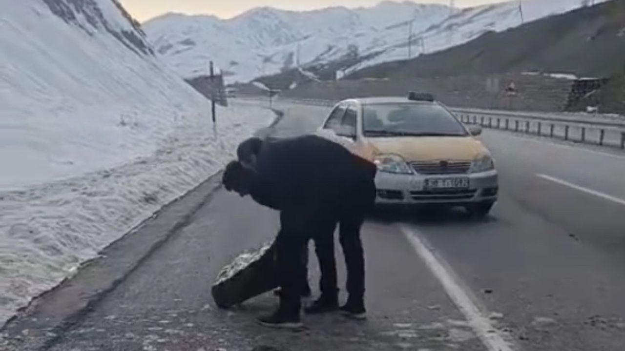 Yoğun kar yağışının ardından dağdan koparak yola düşen dev kaya parçaları, sürücülere zor anlar yaşattı. Duyarlı vatandaşların hızlı müdahalesi sayesinde karayolu kısa sürede yeniden ulaşıma açıldı.
