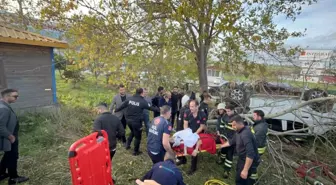 TEKİRDAĞ'DA FECİ KAZA: KARI KOCA TAKLA ATAN ARAÇTAN SAĞ SALİM ÇIKARILDI