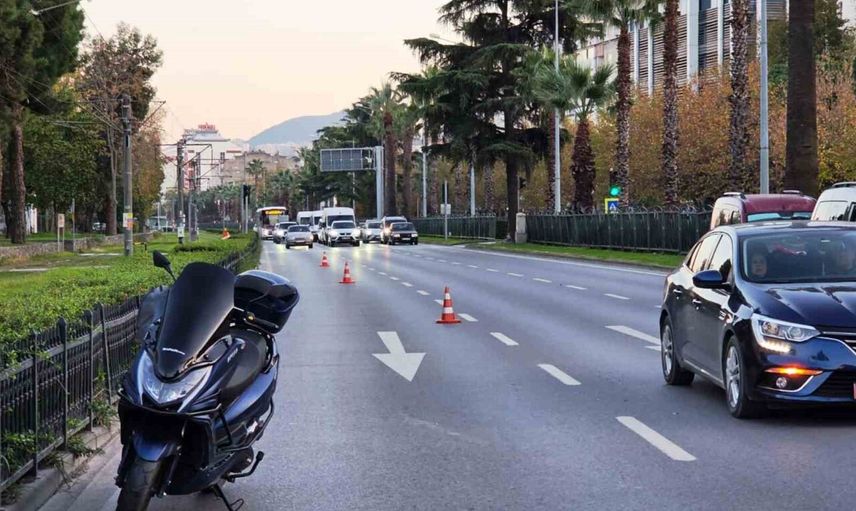 Atatürk Bulvarı’nda meydana gelen kazada motosiklet sürücüsü yola savrularak hafif şekilde yaralandı, trafik bir süre aksadı.