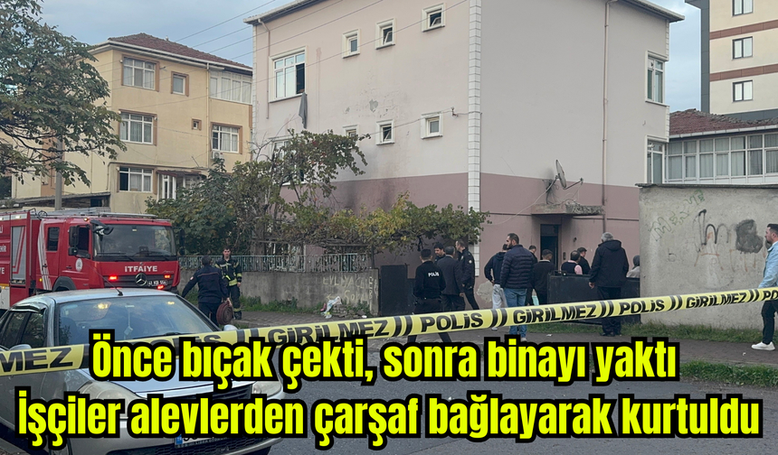 Önce bıçak çekti, sonra binayı yaktı: İşçiler alevlerden çarşaf bağlayarak kurtuldu