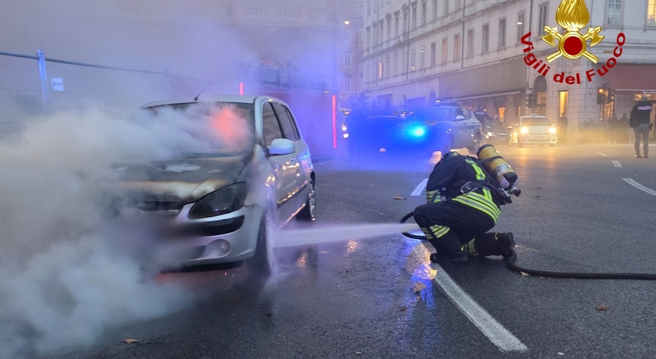 TRIESTE - Il fumo che esce dall'auto e l'ignaro conducente che continua per la sua strada fino a quando una pattuglia della polizia nota quel fumo che da li a poco si sarebbe trasformato in un incendio e ferma la vettura, salvando chi era al volante.