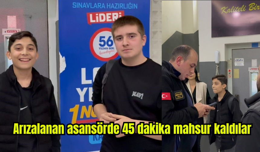 Asansörde yaklaşık 45 dakika mahsur kalan 2 öğrenci, itfaiye ekipleri tarafından kurtarıldı.