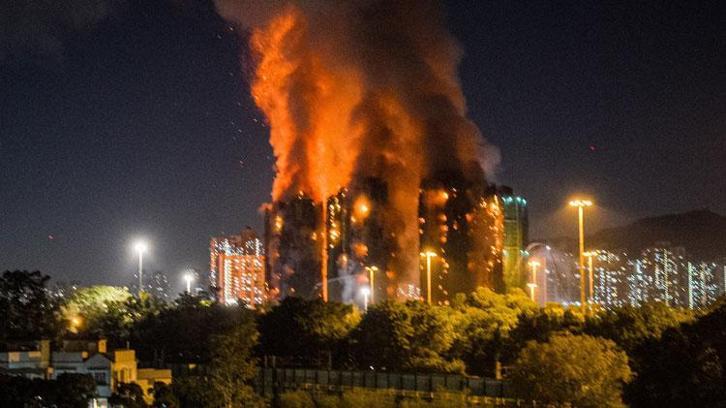 Hong Kong'un kuzeyindeki Tai Po bölgesindeki bir sitede bulunan 31 katlı gökdelende başlayarak 7 binaya yayılan yangında can...