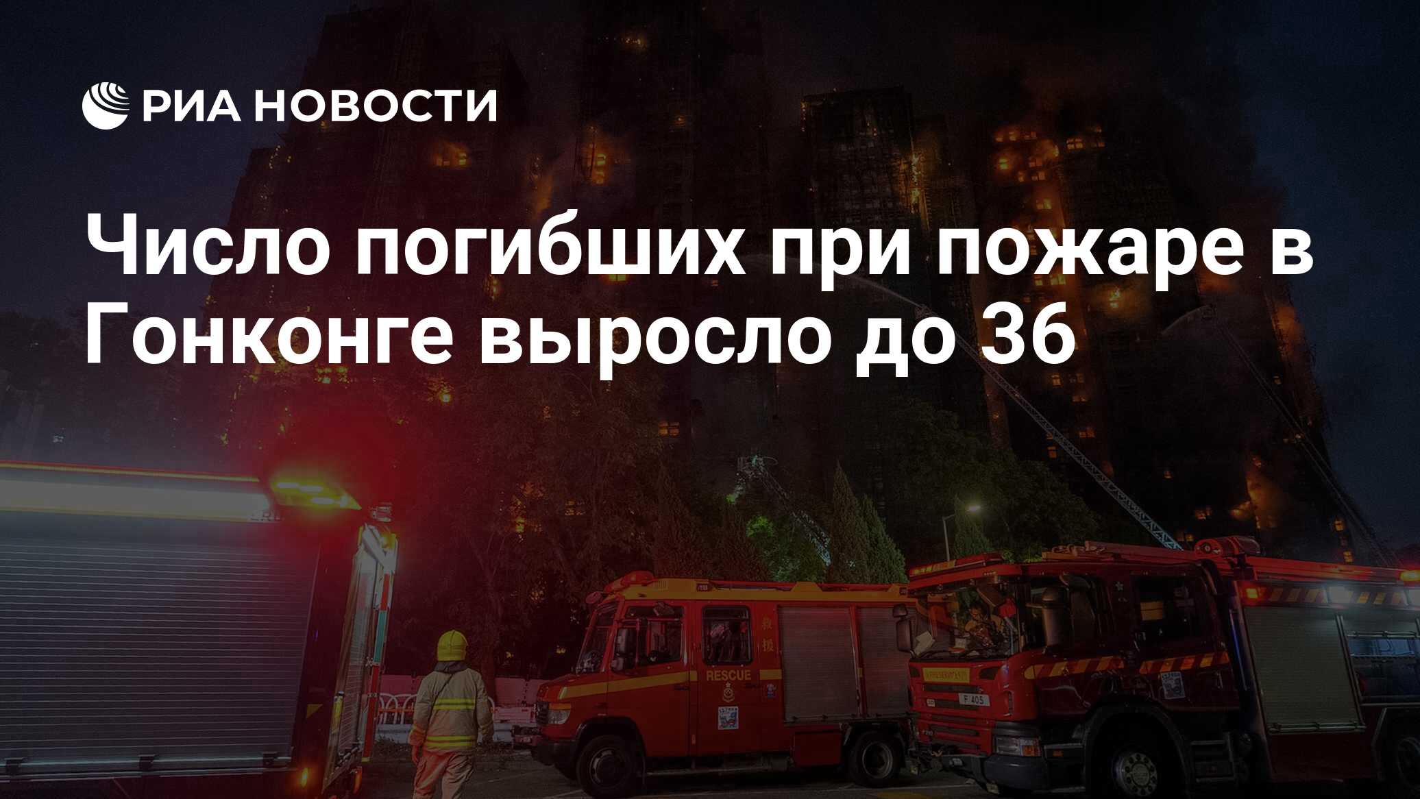 МОСКВА, 26 ноя - РИА Новости. Число погибших при пожаре в Гонконге выросло до 36, сообщает местный портал HK01 со ссылкой на главу администрации Гонконга Джона Ли (Ли Цзячао). В среду в Гонконге пожар охватил все восемь зданий жилого комплекса Wang Fuk...