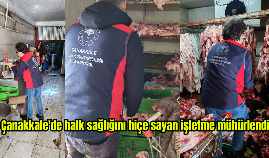 Çanakkale'de izinsiz ve uygunsuz şartlarda çalışan et ve sakatat işleme faaliyeti gösteren bir işletme mühürlendi.