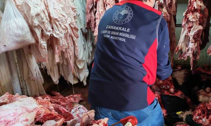 Çanakkale'de, mevzuata aykırı olarak uygunsuz koşullarda onaysız faaliyette bulunan et ve sakatat işleme tesisi mühürlenerek, 4 bin 860 kilogram çeşitli sakatat, 500 kilogram kırpıntı et ve 50 kilogram köfte imha edilmek üzere el konuldu.