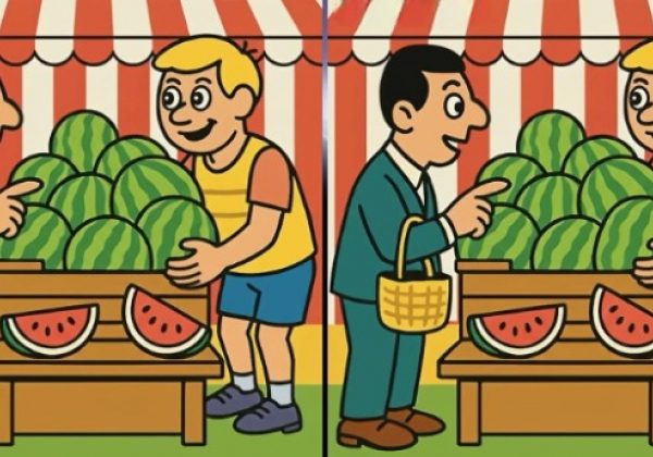 21. Тест на IQ: найдите 3 отличия на картинке мужчины с арбузом за 27 с