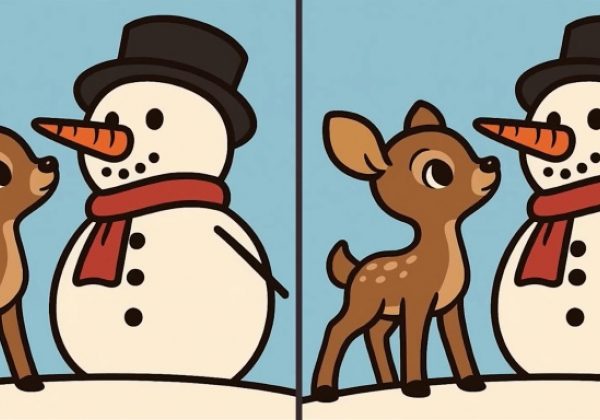 16. Суперголоволомка: найдите 3 отличия на картинке снеговика и оленя за 75 с