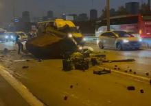 16. TEM'de feci kaza! Araç paramparça oldu
