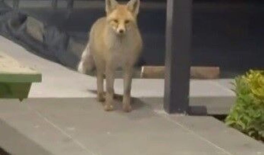 Erzincan’da evin bahçesine girip kedi mamalarını mideye indiren tilkinin rahat tavırları "pes" dedirtti.