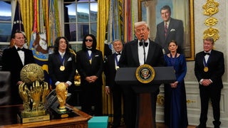 WASHINGTON (AP) — President Donald Trump on Saturday presented the 2025 Kennedy Center honorees with their medals during a ceremony in the Oval Office, hailing the slate of artists he was deeply involved in choosing as “perhaps the most accomplished and...