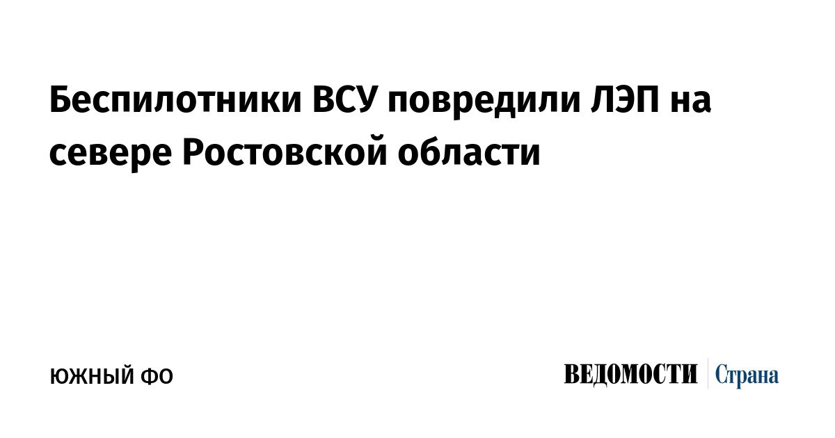 Беспилотники ВСУ атаковали север Ростовской области. В результате повреждена вышка ЛЭП на окраине хутора Колундаевский, сообщил губернатор региона Юрий Слюсарь.