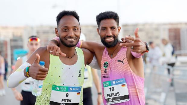 1 Amanal Petros (r) nahm Samuel Fitwi (l) den deutschen...