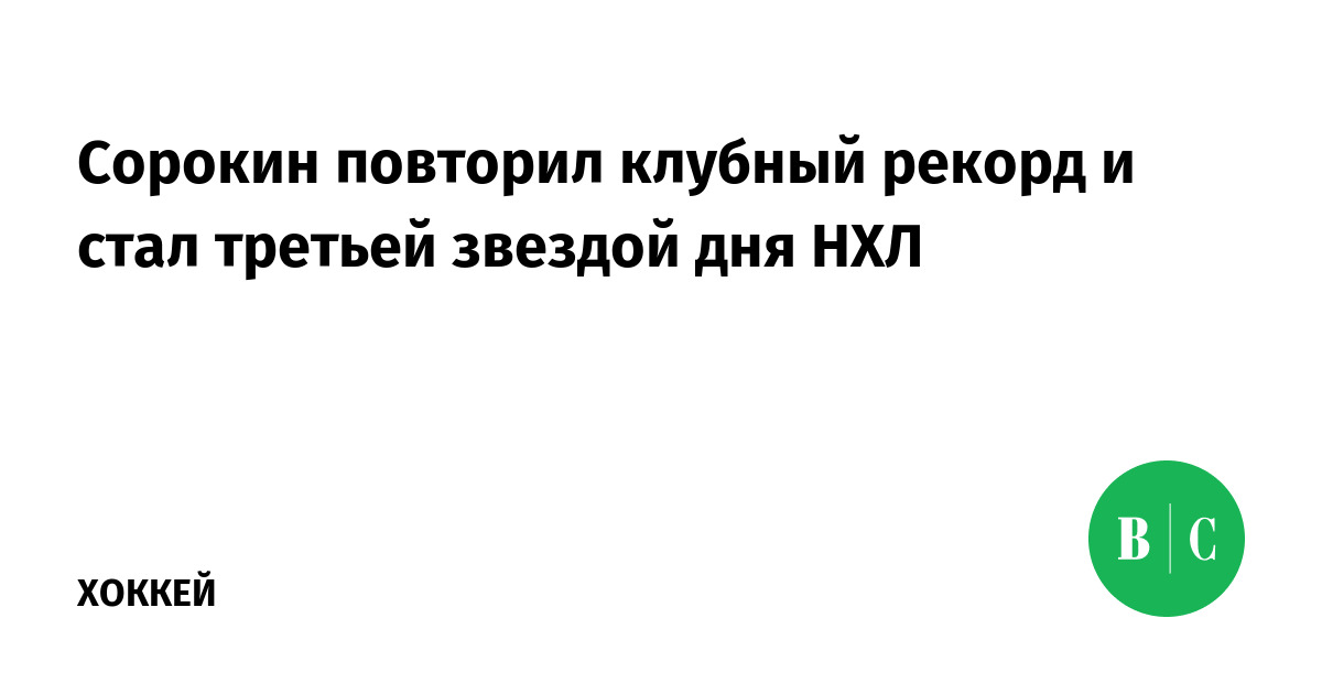 Голкипер команды «Нью-Йорк Айлендерс», россиянин Илья Сорокин, был признан третьим игроком дня в Национальной хоккейной лиге (НХЛ), как указано на официальном сайте лиги. В прошедшее воскресенье «Айлендерс» одержали победу на выезде над командой...