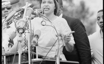 Rosa Parks delivers remarks in front of the Alabama State Capitol at the conclusion of the 54 mile march from Selma to Montgomery. Alabama...