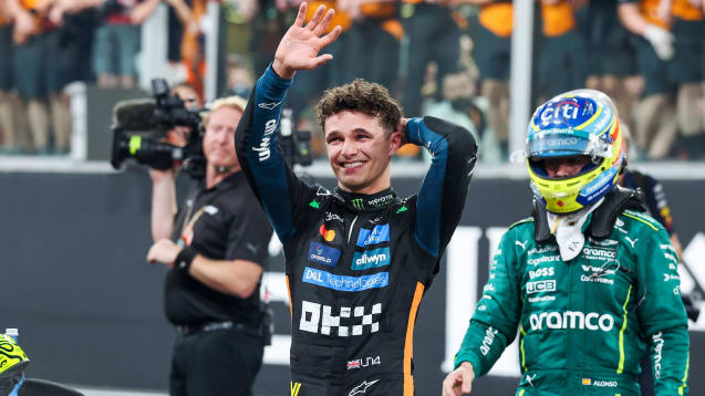 Abu Dhabi (dpa) - Ganz allein auf dem Podium über der Start- und Zielgeraden am Ort des größten Erfolgs seiner Karriere reckte Lando Norris immer wieder die Faust nach oben. Mit Tränen in den Augen himmelten die Eltern, die Geschwister...