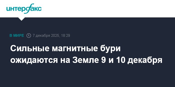 Магнитные бури уровня G2–G3 (от средних до сильных) ожидаются во вторник и среду, 9 и 10 декабря, в...