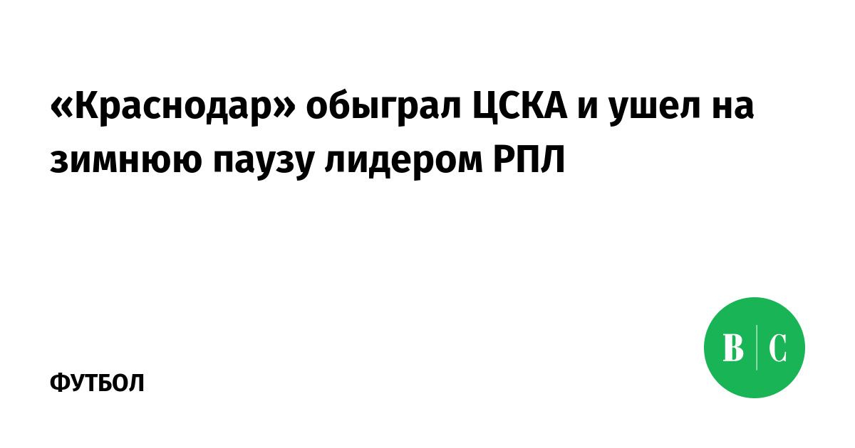 1. «Краснодар» обыграл ЦСКА и ушел на зимнюю паузу лидером РПЛ