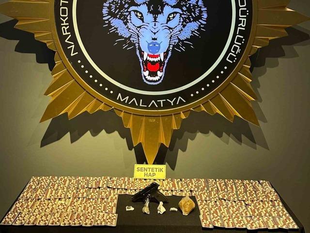 Malatya'daki operasyonda 6 ikamet ve 6 şüpheli üzerinde yapılan aramalarda çeşitli türlerde uyuşturucu madde ve binlerce hap ele geçirildi.