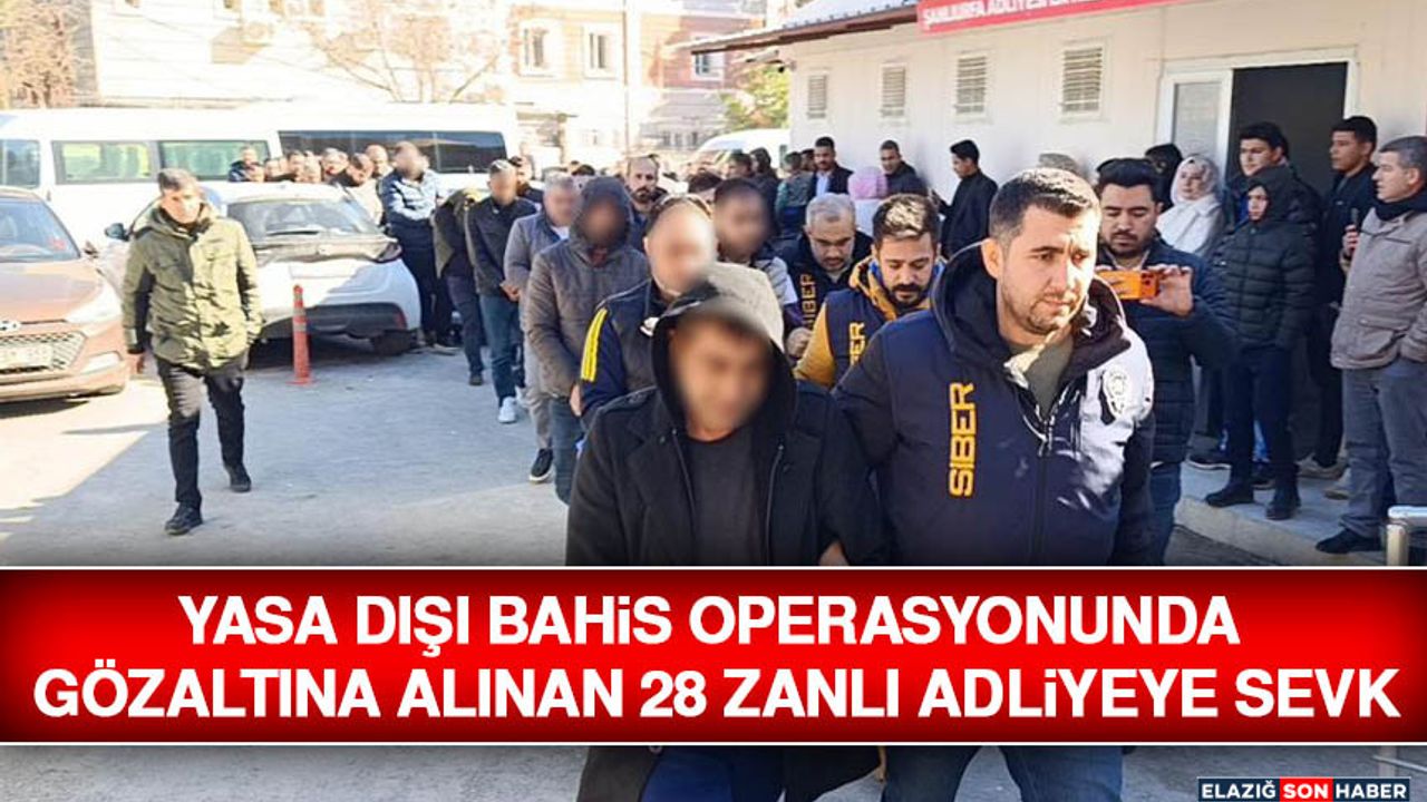 Şanlıurfa’da polis ekipleri tarafından toplam 382 milyon lira işlem hacmi olan banka hesaplarını kullandığı belirlenen şahıslara yönelik gerçekleştirilen yasa dışı bahis operasyonunda gözaltına alınan 28 kişi adliyeye sevk edildi.