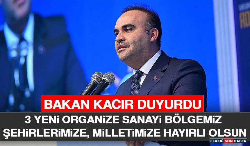 Sanayi ve Teknoloji Bakanı Mehmet Fatih Kacır, Elazığ, Kastamonu ve Kırıkkale'de yeni Organize Sanayi Bölgeleri'nin kurulduğunu açıkladı.